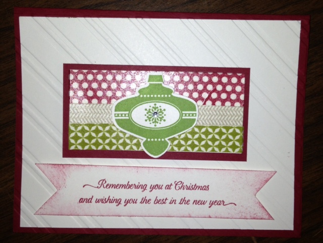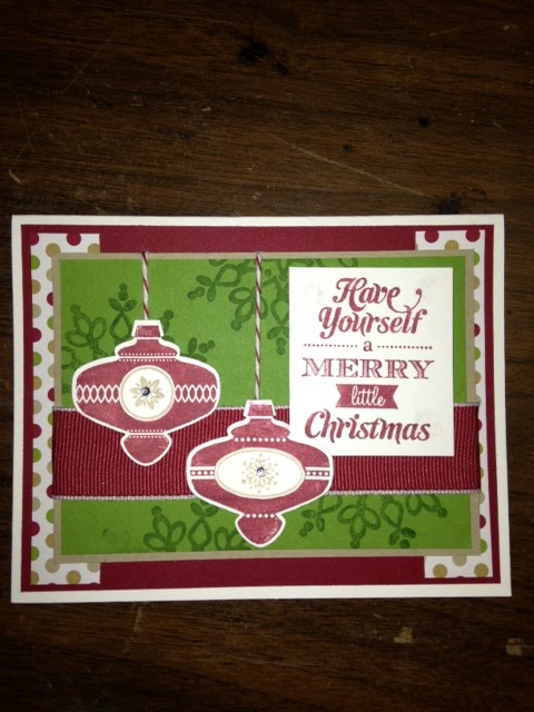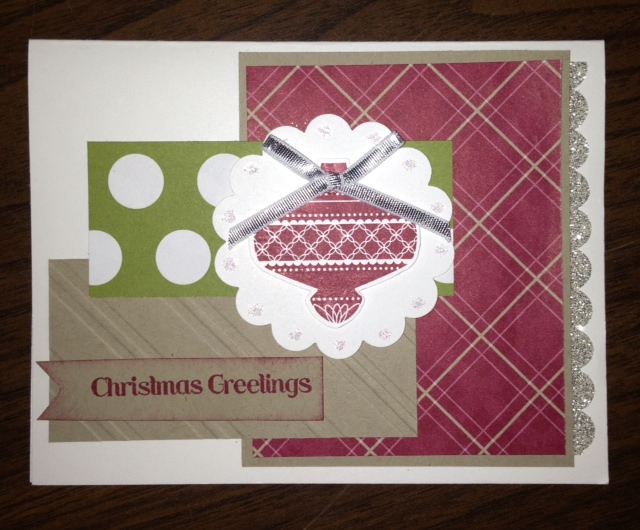 Happy Monday to everyone! I finally remembered to take some pictures of the Christmas cards for the card class I am offering September 25th. Remember that I am also offering the ornament class, you can pick one, or BOTH!! Details regarding the cost of the classes can be seen by looking at my class schedule. Don’t forget to RSVP in advance! I need to order the product in advance for both options!